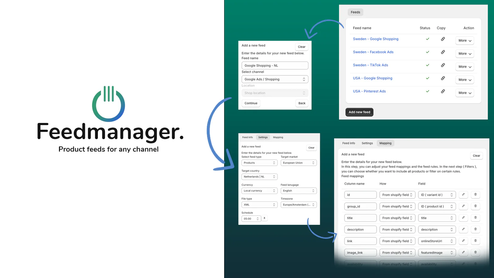 Feedmanager enables you to effortlessly create, manage, customize, and optimize your product feeds across all channels.
